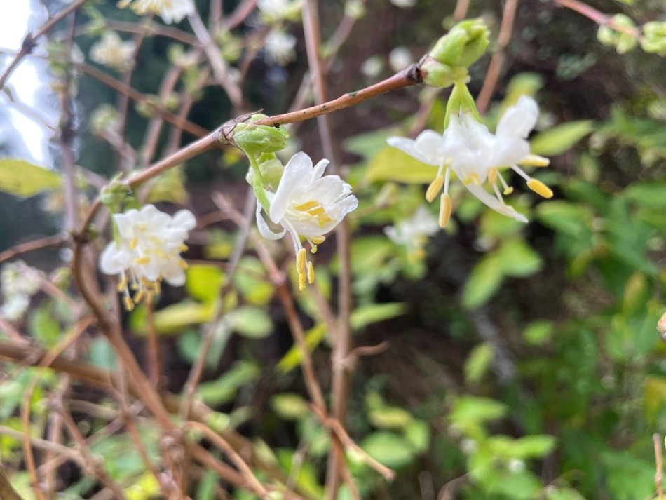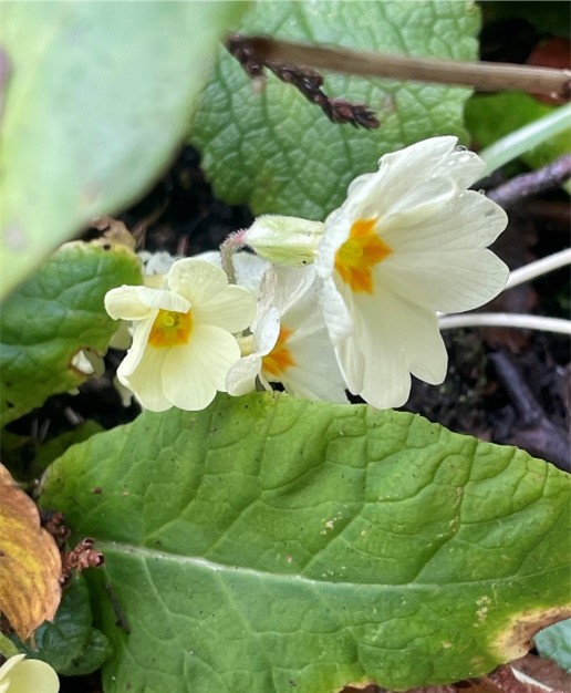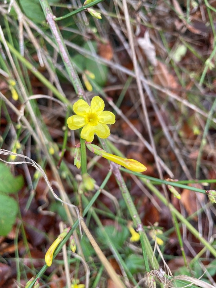 There are a few trusty flowers around in my garden – primrose, winter flowering jasmine and winter honeysuckle. Viburnum Tinus and witch hazel are showing promising signs too.
